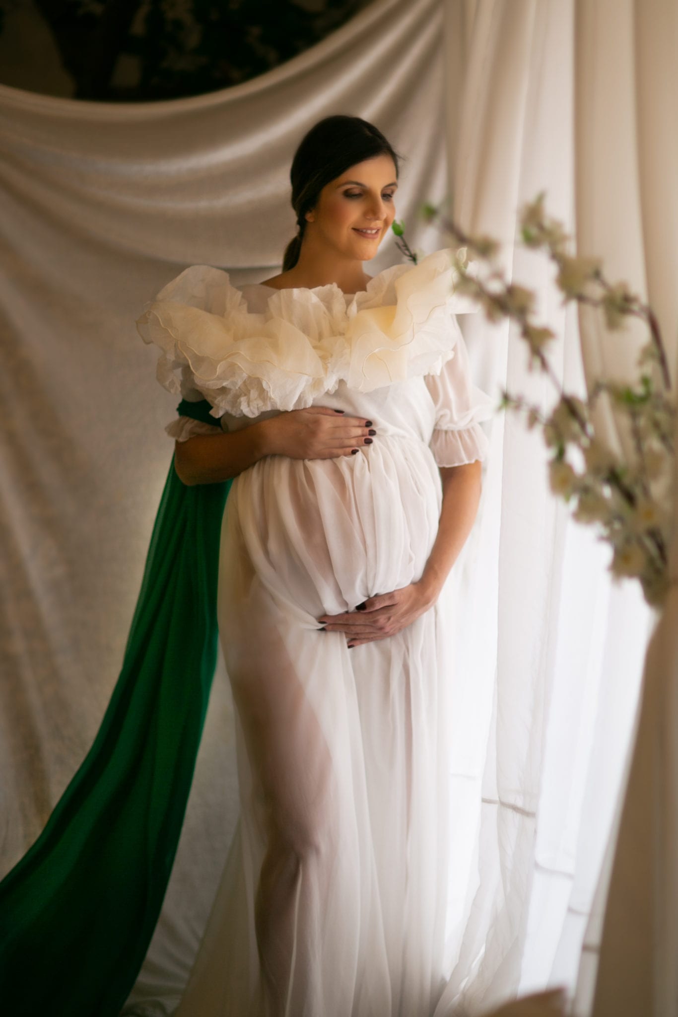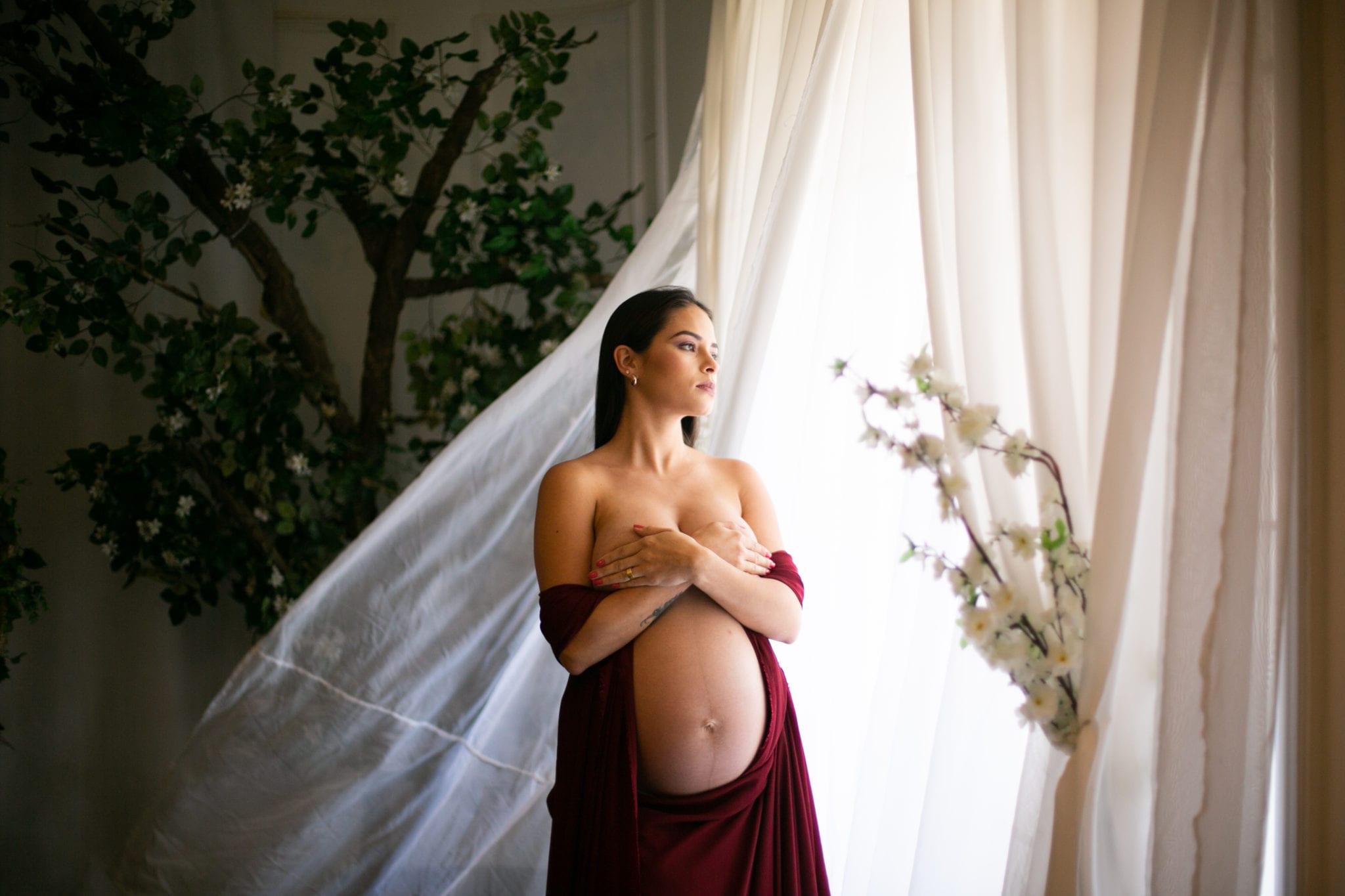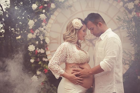 Em relação às roupas e figurinos, disponibilizamos alguns para o ensaio, mas caso a gestante queira realizar com roupas próprias, indicamos que evitem roupas com muitas estampas ou cores fortes. Afinal, não podemos chamar mais atenção do que a barriga, né?
